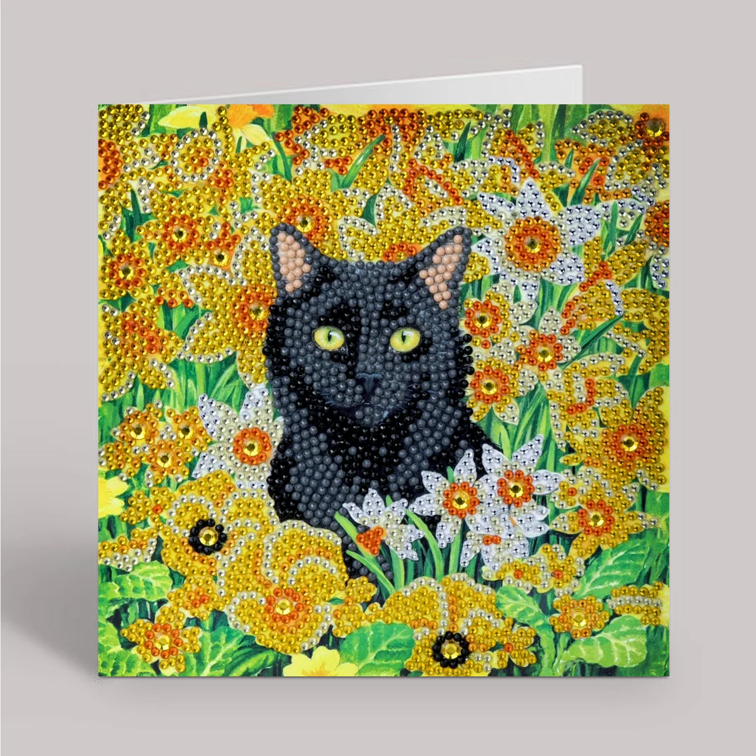 Cat Amongst the Flowers Crystal Art Greetings Card