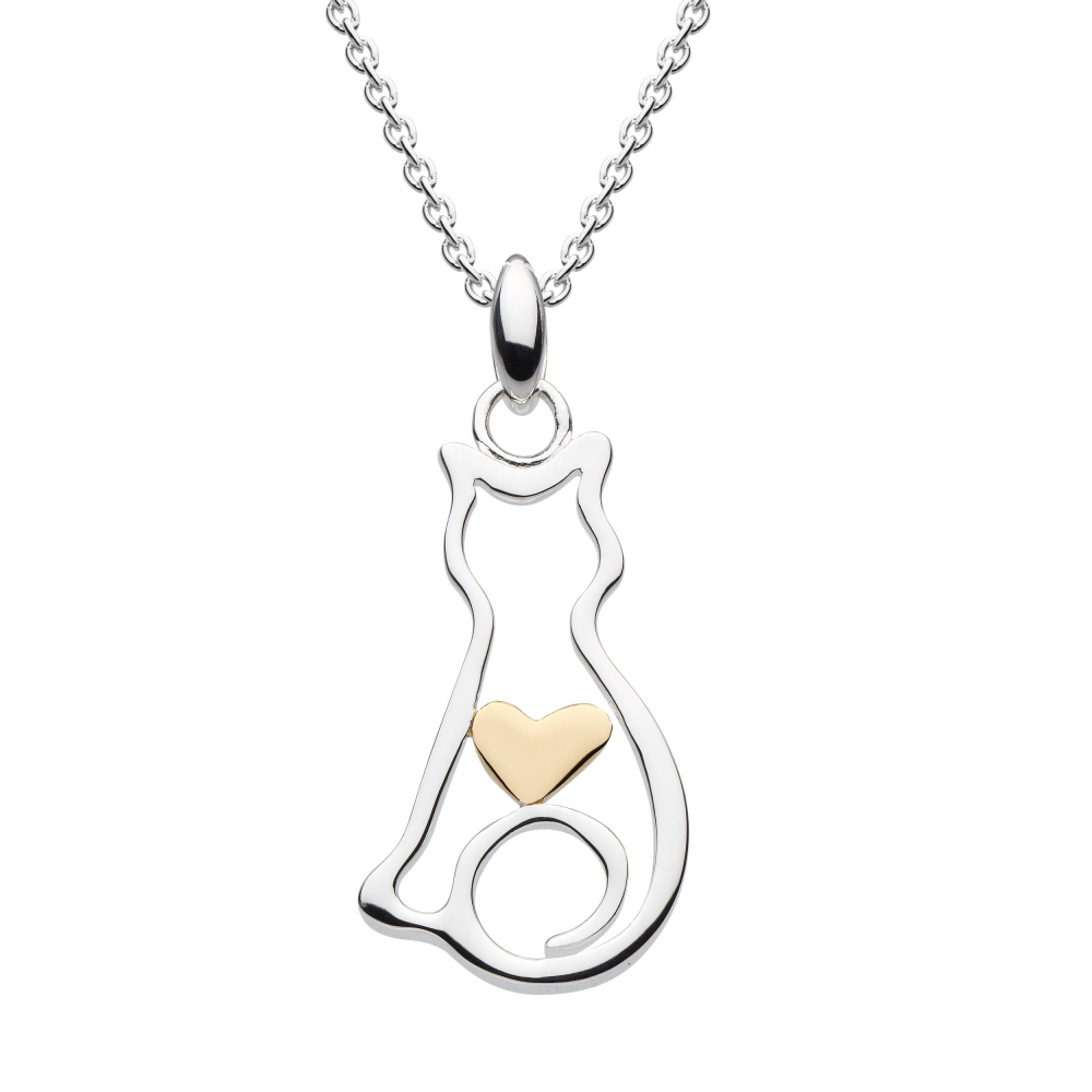 Cat with Gold-Plated Heart Pendant Necklace